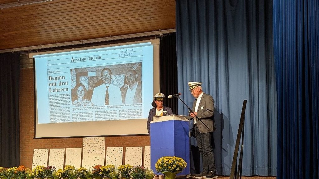 Anschließend blickten unsere Schulleiterin Frau Diel und unser ehemaliger Schulleiter Joachim Blombach in einem Frage-Antwort-Gespräch gemeinsam auf die Geschichte der Schule zurück. Es wurde deutlich, wie alles begann, welche Herausforderungen es gab und wie die Schule sich entwickelte.