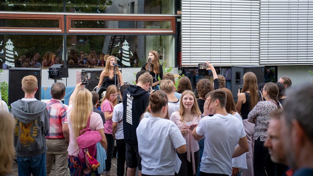 Nach dem offiziellen Teil sorgten die einfallsreichen Aktionen der Klassen für eine wunderbare Atmosphäre auf dem gesamten Schulgelände. Die Gäste genossen die zahlreichen Angebote vom Fahrradparcours über Escape Rooms bis hin zu kreativen Bastel- und Spielangeboten. Überall wurde gelacht und gefeiert. Auf einer kleinen Bühne auf dem Schulhof sorgten diverse Musik- und Tanzauftritte für Unterhaltung und Applaus.