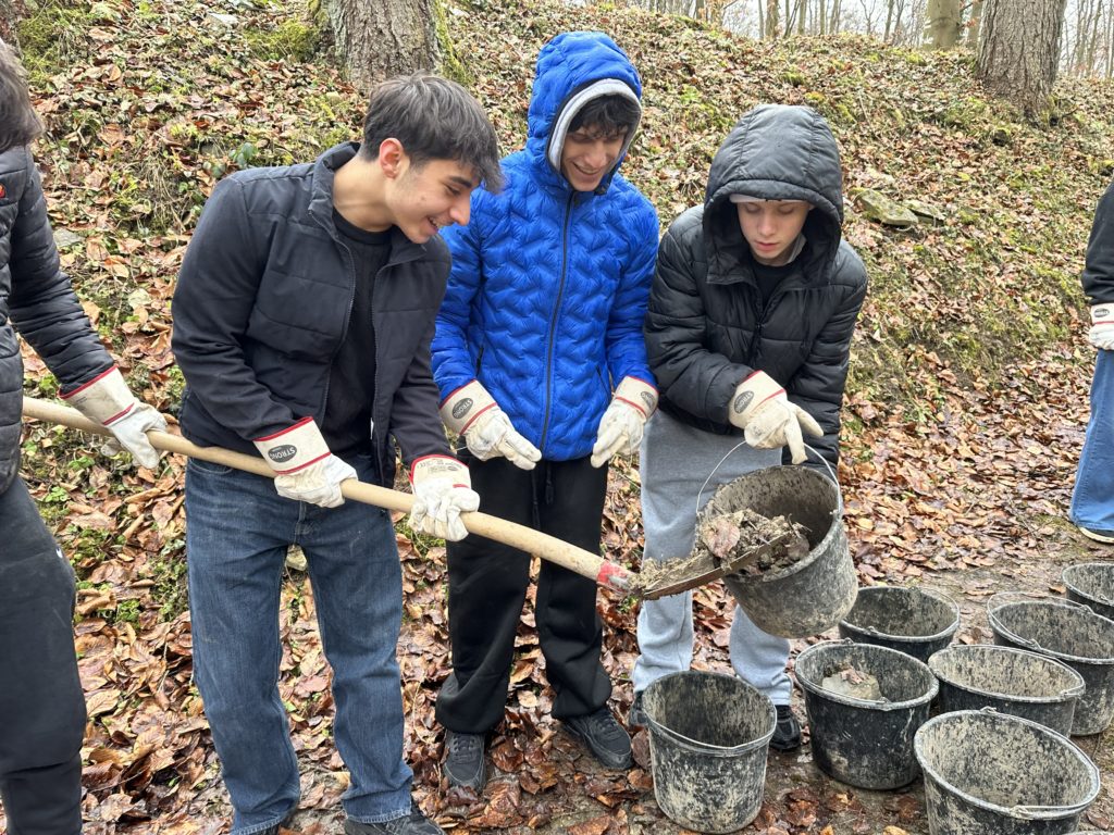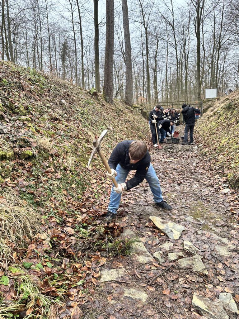 Nach der inhaltlichen Einführung und dem Rundgang durch die Ausstellung „Ideologie und Terror der SS“ nahmen wir am Workcamp am ehemaligen Schießstand der SS teil. Dabei arbeiteten wir aktiv an einem historischen Ort, der lange Zeit überwuchert und kaum sichtbar war. Durch das Freilegen und Reinigen des Geländes wurde deutlich, wie wichtig es ist, Erinnerungsorte zu erhalten und bewusst zugänglich zu machen.